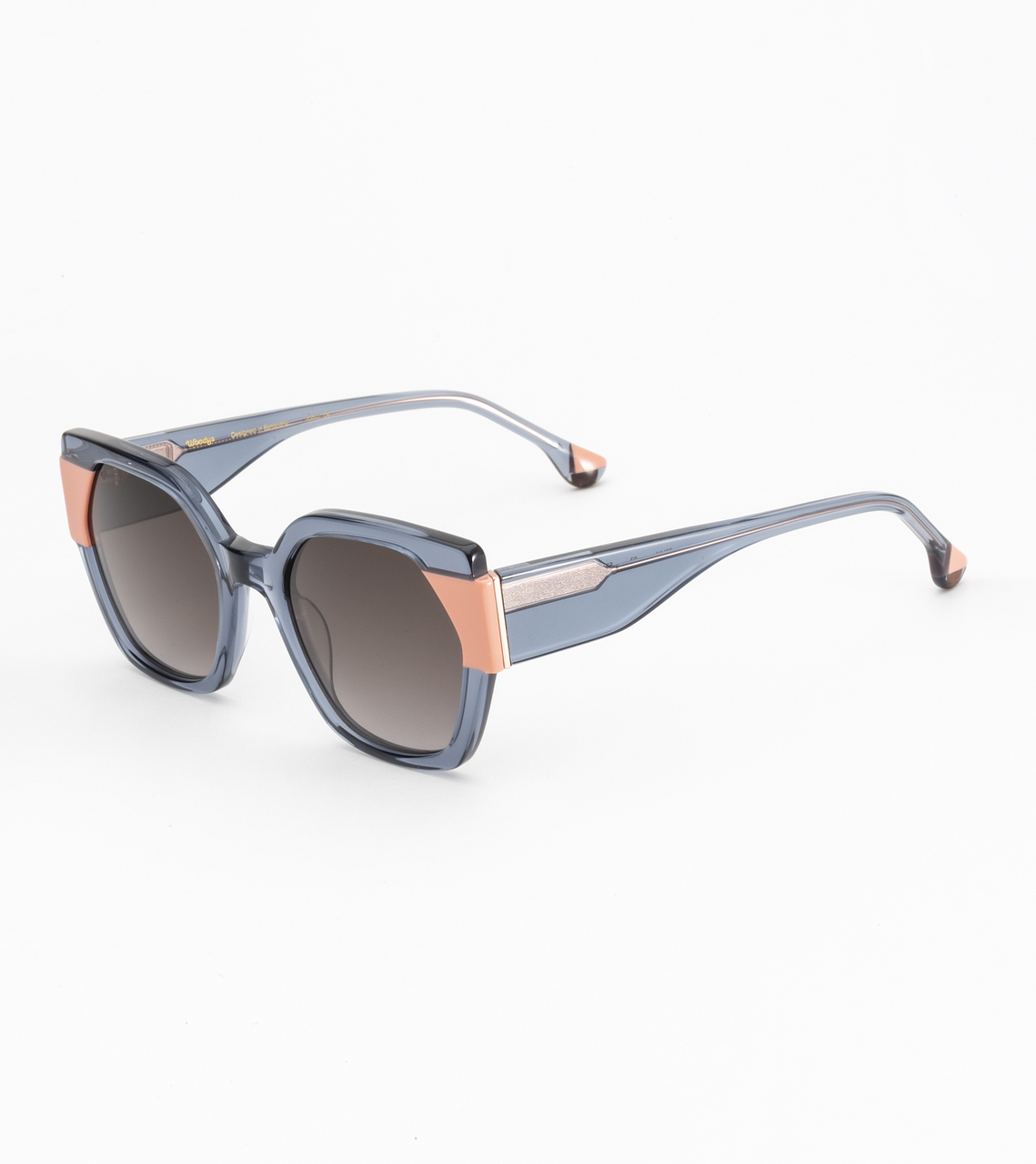 Montura de acetato con laminado de color lateral. Bisagra alemana de 5 ejes y lentes CR39 con protección UVA y UVB producidas por Carl Zeiss.