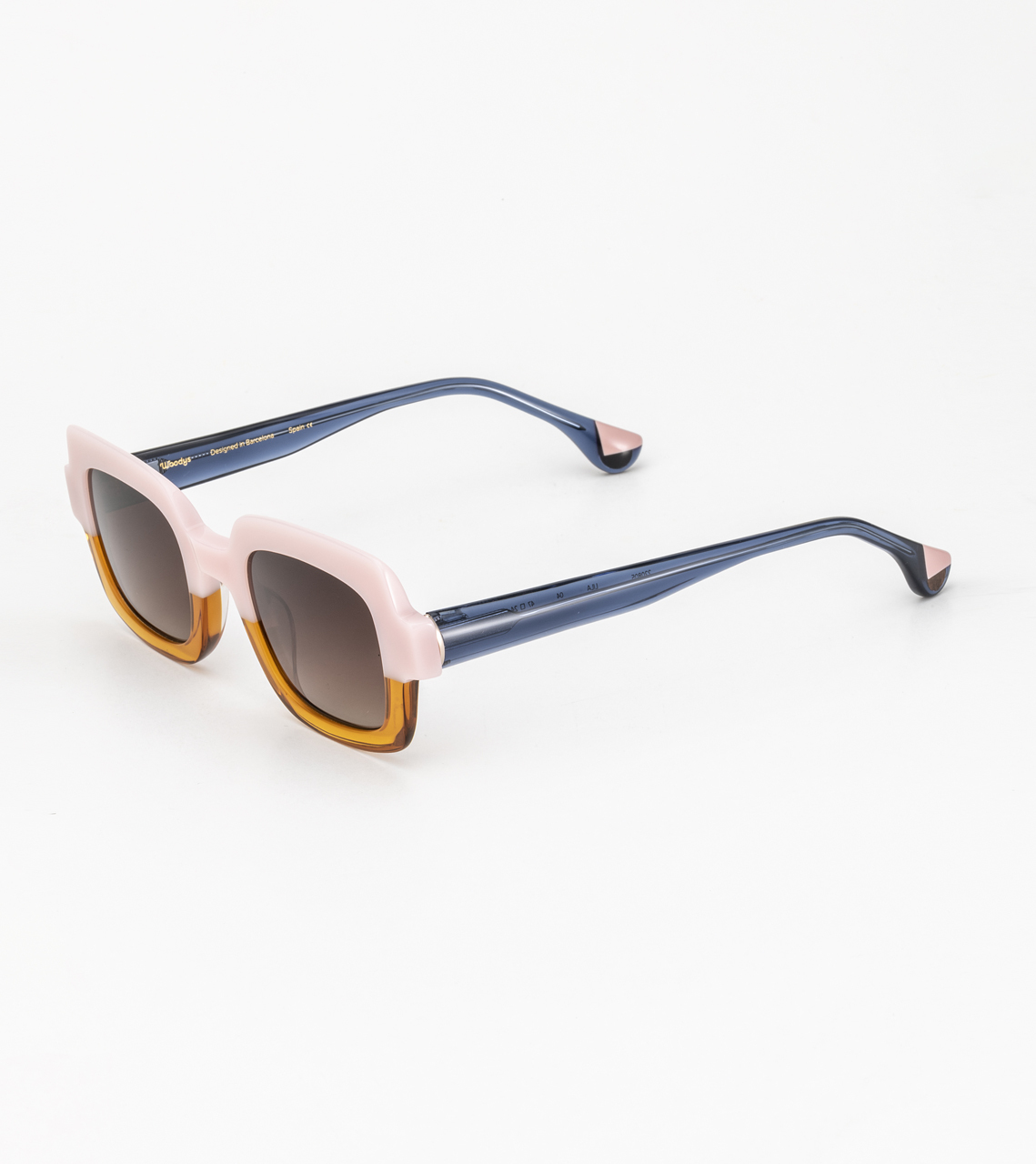 Diseño de acetato italiano con volúmenes. Bisagras alemanas de 5 ejes y lentes CR39 con protección UVA y UVB producidas por Carl Zeis