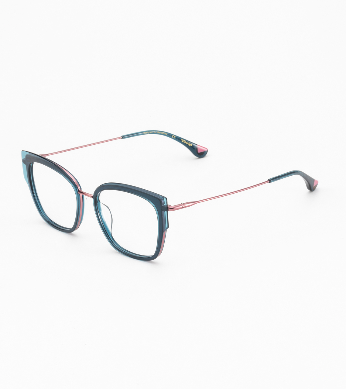 Montura combinada con frente de acetato italiano fresado. Terminal de acetato con incrustación de madera.